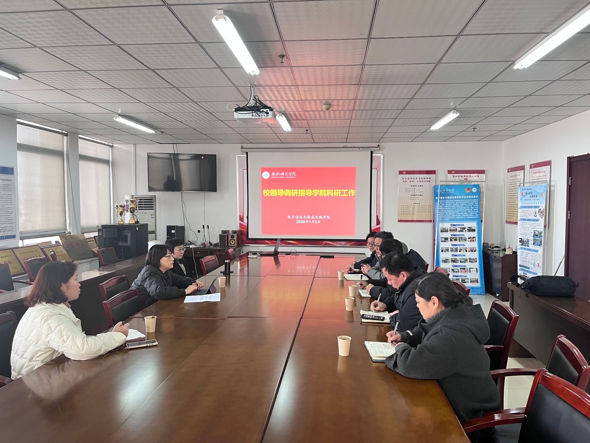 为乘势推进学术科研工作、精准谋划“十五五”规划、助力学校高质量发展,1月5日下午,校党委副书记、校长方东玲和校党委副书记梁立昌来到电子信息与集成电路学院看望姚吉鑫老师并主持召开专题调研会,校科研处处长胡昂陪同,学院党政领导班子、教师代表姚吉鑫副教授参加。